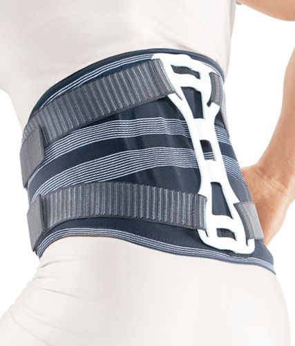 В комплекте с гибкими рёбрами ограничивает подвижность, стабилизируя поясничный отдел позвоночника.
